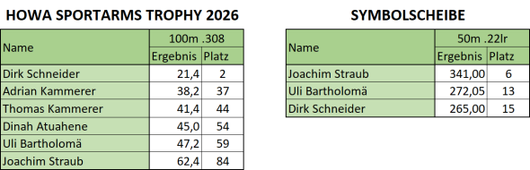 Der Schützenclub Mühlburg hat am 21. und 22.02.2026 seine diesjährige 10. Sportarms-HOWA-Trophy und das gleichzeitig stattfindende 12. KK-Militärgewehr-Turnier durchgeführt.